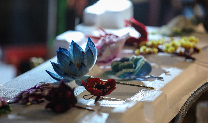 Craft Procedure Velvet Flower craft, the production process of this traditional Chinese handicraft, is a complex and delicate art. The process includes splitting, brushing, hooking, cutting, rubbing, tipping, ironing, shaping and sticking. It uses silk as the main material, and firstly undergoes the step of boiling in alkaline water to form soft and firm cooked velvet, when controlling the time and fire to prevent the silk from rotting too much is particularly critical. The cooked velvet is then dyed according to the colour of the desired velvet flower and dried on bamboo poles, which are constantly turned to ensure uniformity of colour. The dyed silk is split, lined up and combined with brass wire, which is brushed flat and evenly to form a velvet band. After special treatment, the brass wire is twisted with the velvet tape to form a spiral velvet strip, which is the basic component of the velvet flower. The velvet strips are processed into various shapes through ironing, pointing and other steps, and finally, through the process of shaping, i.e., using tweezers to shape the velvet strips that have been pointed and combining them, and supplemented with materials such as lead wire, leather paper, beads, etc., combining the velvet strips with beads, gold and silver and other materials, called ‘sticking the flowers’, to produce the finished products of the velvet flowers. The production process not only requires craftsmen to have superior skills and infinite patience, but also reflects the ultimate pursuit of details in every step, making Velvet Flower not only decorative, but also a work of art that carries traditional Chinese culture. The Velvet Flower embody the spirit of ‘skill to carry the way’, and the ‘fineness’ and ‘precision’ of the craftsmanship through the core of its production spirit. (Zhou Shang, 2017:42) Historical Development Velvet Flowers are traditional Chinese handicrafts with a long history and rich cultural connotations. The following is a brief overview of the historical development of it: Origin and Early Development The history of Velvet Flowers can be traced back to the Tang Dynasty, and is said to have begun as a tribute to the court of the Tang Dynasty more than 1,000 years ago. At the end of the Tang Dynasty, it was already present in the court life and was called ‘palace flowers’. Its name means ‘glory and splendour’, implying richness and good luck, always blooming, is a representative of the rich culture. Prosperity in the Ming and Qing Dynasties In the Ming and Qing Dynasties, the development of Velvet Flowers was in boom. The court established ‘Jiangning Weaving Bureau’ to weave the silk fabrics needed by the court, including the Velvet Flowers. The production of Nanjing Velvet Flower crafts was at a considerable scale as early as the Ming and Qing dynasties. For its peak period ruled by Kangxi and Qianlong, two emperors during the Qing dynasties, businessmen from Anhui, Jiangxi, Hubei, Henan provinces and other places often went to Nanjing province to purchase the Velvet Flower. Prosperity in the Republic of China During the Republic of China, the Velvet Flower industry continued to prosper. At the south of the Nanjing city, there were a lot of Velvet Flower shops, which formed as the ‘Flower Market Street’, ‘Velvet Flower Street’ and other streets. Yangzhou also had the Wanzi Street as the center for the production and sales of Velvet Flower. During this period, the Velvet Flower industry benefited from the development of Nanjing Yunjin industry, which produced a large amount of silk scraps, providing sufficient raw materials for the production of the Velvet Flower. Changes after the founding of New China After the founding of New China, the Velvet Flower industry experienced ups and downs. In order to speed up the recovery of the handicraft industry, the government helped set up co-operatives, including the Craft Velvet Gift Flower Co-operative, so the Velvet Flower industry was able to make a comeback, and was warmly received and highly praised in the Nanjing Arts and Crafts Exhibition at that time. (Yang Zhihong, Yang Yongmei, 2024:91) There was a great breakthrough in its style and technology, and a large number of exquisite handicrafts were produced and exported overseas. However, around the 1990s, as the crafts of the Velvet Flower lacked innovation and remained at the level of traditional skills in the past, the market demand dwindled, and its productive conservation was difficult to achieve. (Chen Yuyuan, 2019: 34) Protection and Inheritance of Intangible Cultural Heritage In recent years, with the increasing awareness of intangible cultural heritage protection, the Velvet Flowers have been rated as intangible cultural heritage and have received much attention again. Nanjing Velvet Flower was listed as provincial intangible cultural heritage in 2007, which has received extensive attention from society and scholars. To sum up, the historical development of Velvet Flower has gone through the process from palace tribute to the popular decoration among the folk, and then to the protection of intangible cultural heritage in modern times. It is not only a representative of traditional Chinese handicrafts, but also an important part of traditional Chinese culture. Symbolic significance Velvet Flower was initially used only in the court and later spread to the folk. Compared with the initial meaning of high position and great wealth, the folk give it more new meaning and wishes. The modelling and content are also more use of folk auspicious themes, to express the meaning of auspicious blessings, in order to pray for good luck, to ward off evil spirits. In the wedding ceremony, Spring Festival, Dragon Boat Festival and Mid-Autumn Festival, the folk generally have the custom of decorating with it. Each Velvet Flower is different, showing the beauty of different colours. Velvet Flowers are all handmade by craftsmen throug