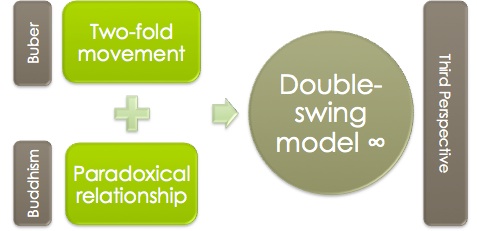 Integration of Western and Eastern perspectives on communication in Yoshikawa's third perspective: the infinite process in the double-swing model.