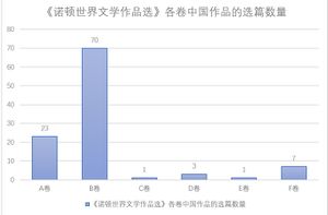 从各分卷所选取的中国文学作品篇目数量上看,B卷(中国中古文学)选编的中国文学最多。但是选篇主要是阮籍、陶渊明、王维、李白、杜甫、李清照等人的诗词,单篇作品的篇幅较小。C卷(约为中国元朝时期)和E卷(约为晚清时期)的作品数量最少,这和其对应时期中国文化的发展状况是相关的。