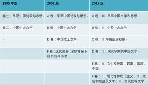 正如前文之中对版本沿革的探讨中所说,在《诺顿》的发展中,对中国文学的选编经历了一个从无到有、由少到多的过程。在这个过程中,具有里程碑式的突破性意义的,是1995年版、2002年版和2012年版。在这三版之中,涉及到中国文学作品的章节如下: